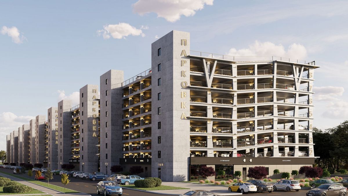 Для автомобилей планируется построить многоуровневый паркинг с коммерцией на 1 этаже.