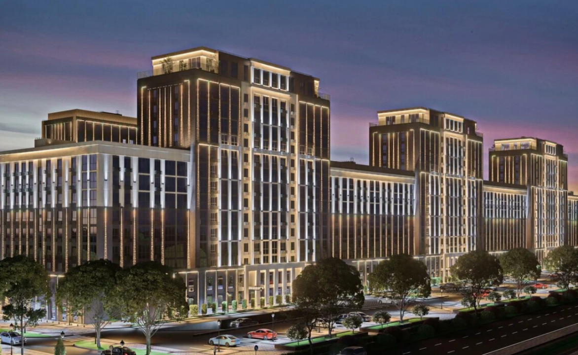 Комплекс состоит из многоэтажного жилого дома переменной этажности (9 и 15 этажей), имеющего П-образную конфигурацию. Всего в комплексе семь блоков, каждый из которых является отдельным осадочным и сейсмическим элементом, отделенным от других антисейсмическими швами на всю высоту здания.